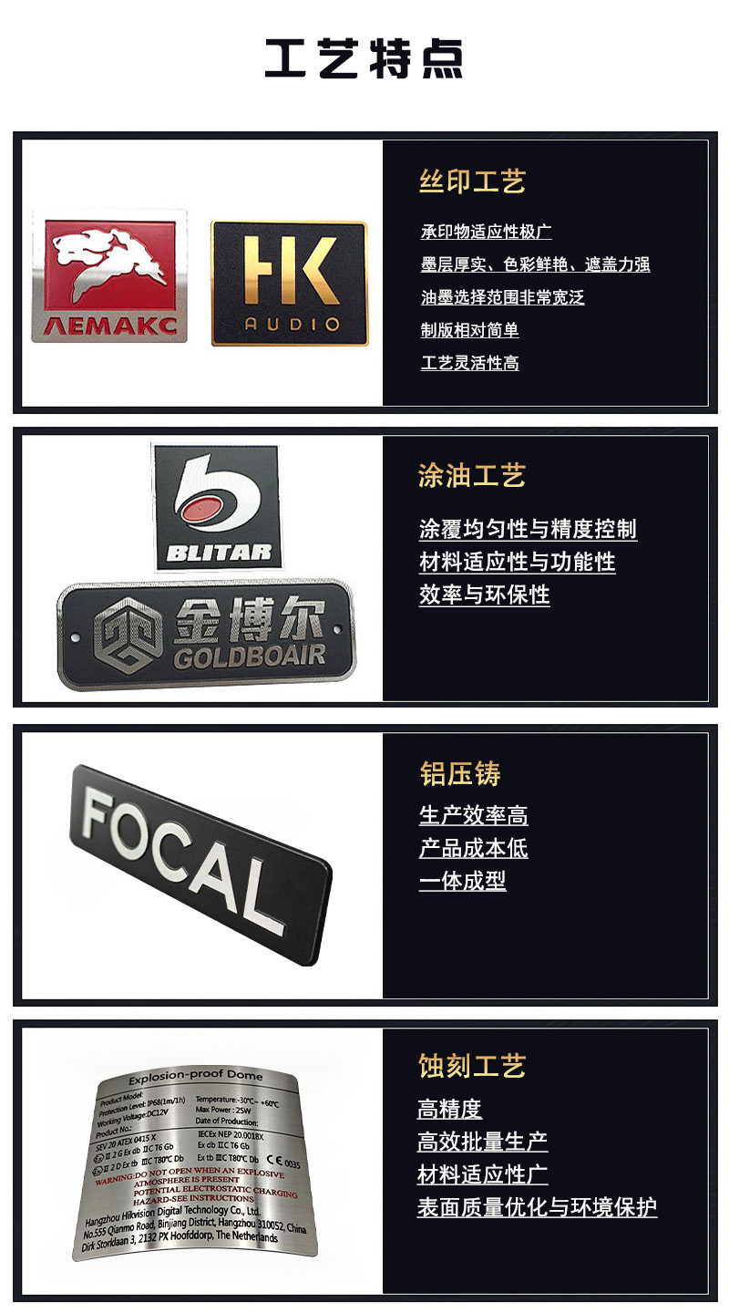 不銹鋼金屬標(biāo)牌適用于工業(yè)制造與機(jī)械行業(yè)、電子與電器行業(yè)、汽車與交通運(yùn)輸行業(yè)、醫(yī)療與制藥行業(yè)、建筑與裝飾行業(yè)、軍工與安防行業(yè)、奢侈品與禮品行業(yè)。其核心優(yōu)勢(shì)在于適應(yīng)惡劣環(huán)境、信息持久清晰、兼具功能性與裝飾性,因此在對(duì)標(biāo)識(shí)耐用性、精度或美觀度有高要求的行業(yè)中均能發(fā)揮重要作用。