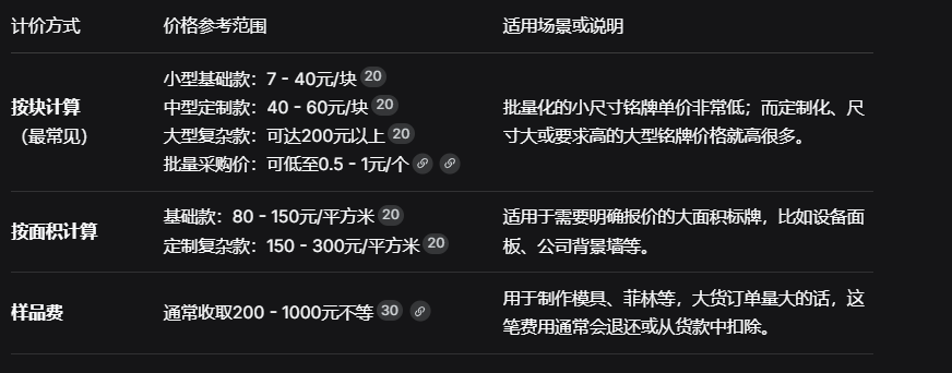 簡單的道理:尺寸越大,材料和加工成本越高。同時,異形或非常規(guī)形狀的銘牌可能需要額外的模具費(fèi)或沖切工序,也會推高價格。
